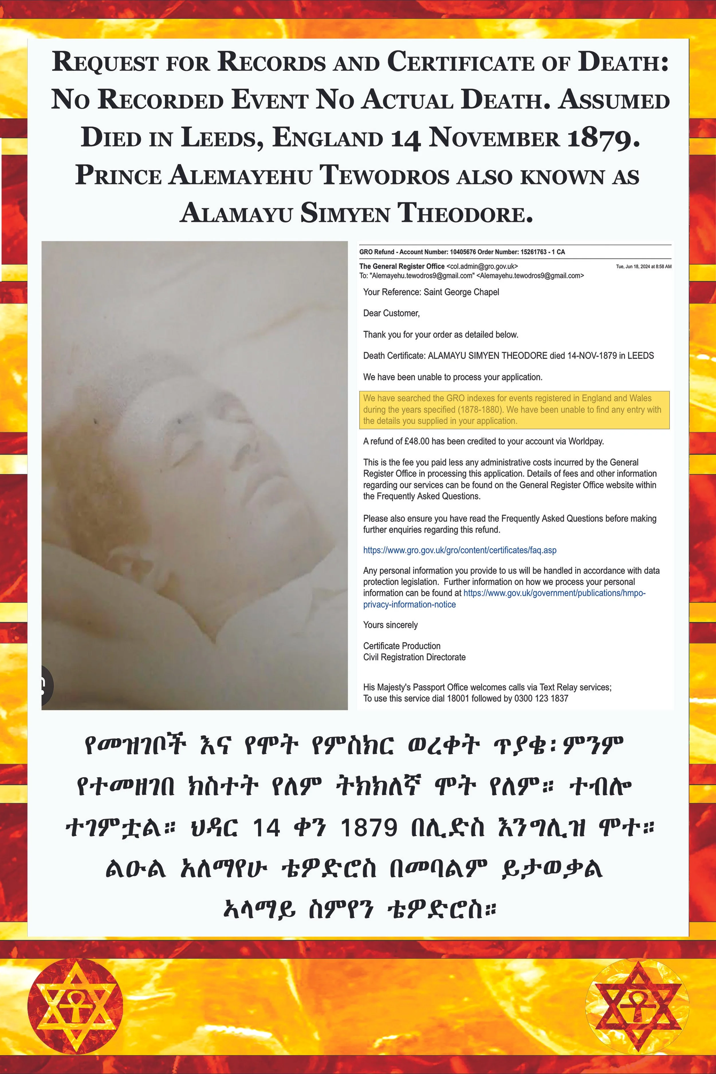 Son of Emperor King Tewodros II, born Kassa Hailu Giorgis Grandson of Prince Hailu Giorgis